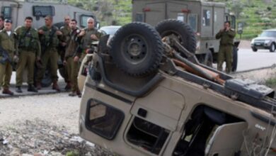 شاهد بالفيديو.. لحظة انقلاب جيب عسكري “إسرائيلي” في الخليل