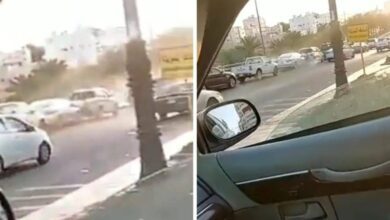 شاهد .. تصادم جماعي بين عدة سيارات من الخلف بسبب وقوف مفاجئ على طريق عام