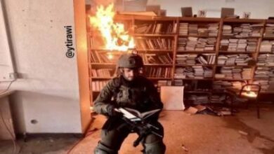 بالصور .. شاهد حرق مكتبة جامعة الأقصى في غزة من قبل جنود الإحتلال