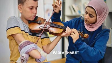 قطعة قماش جسر حياة لأحلام “محمد” التي مزقتها صواريخ الغدر الإسرائيلية