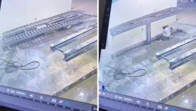 شاهد .. لحظة سقوط رافعة سيارات على ظهر عامل داخل مغسلة