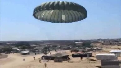 شاهد .. سقوط مساعدات إنسانية فوق خيمة للنازحين وتسويتها بالأرض جنوبي غزة