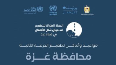 الإعلان عن مواعيد وأماكن الجرعة الثانية للتطعيم ضد شلل الأطفال بشمال غزة