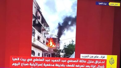 بالفيديو والصور: احتراق منزل الصحفي عبد الحميد عبد العاطي بعد استهدافه بقذيفة