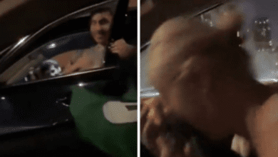 فتاة تعتدي على شاب في مكان عام وتسقطه على الأرض