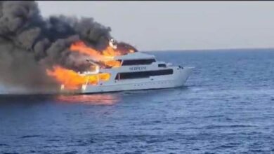 بالفيديو … إنقاذ 26 مصريًا وأجنبيًا في حريق لنش سياحي بمرسى علم