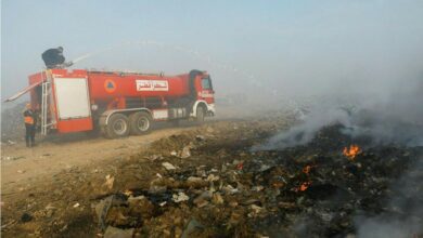 “بالصور” جهود الإطفاء مستمرة منذ الأمس للسيطرة على حريق مكب نفايات “جحر الديك”