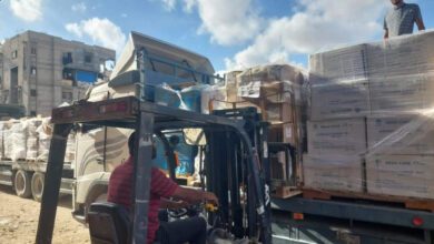بمتابعة وزير الصحة.. وصول خمس شاحنات طبية لمستودعات الوزارة بمستشفى ناصر بخان يونس