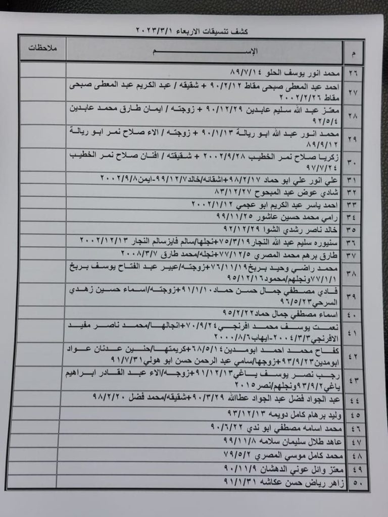 إعلان: كشف التنسيقات المصرية للسفر عبر معبر رفح يوم الأربعاء (1 مارس):