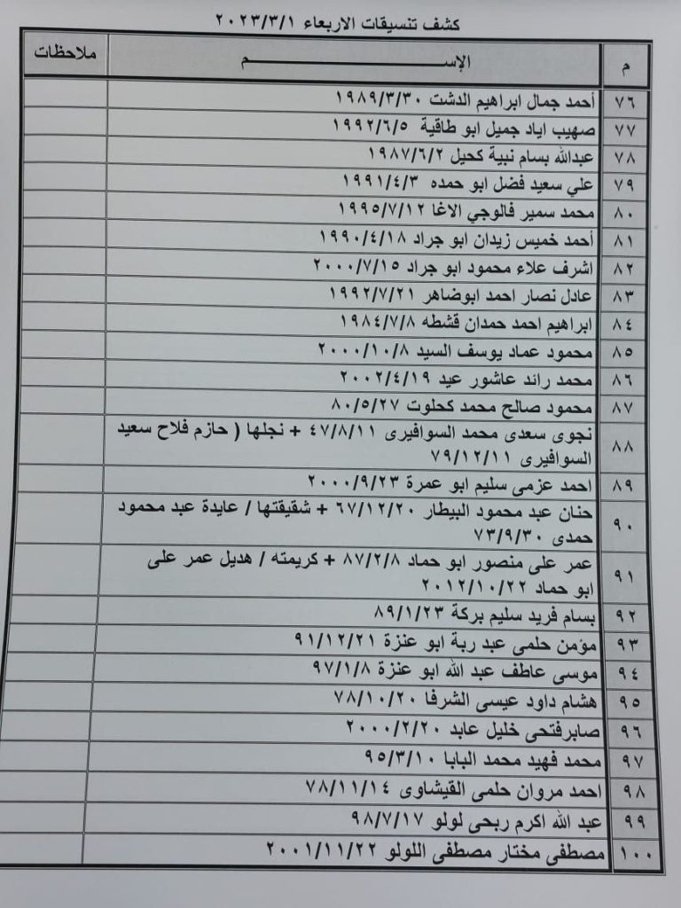 تعلن الهيئة العامة للمعابر والحدود بوزارة الداخلية والأمن الوطني عن وصول كشف التنسيقات المصرية للسفر عبر معبر رفح البري يوم الأربعاء (1 مارس)، والذين عليهم التواجد س 7:00 صباحاً في الصالة الخارجية للمعبر لتسهيل سفرهم.